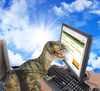 Какими я вижу оба юзерпика? Первый – это динозавр, сидящий за клавиатурой компа. Овераптор или тиранозавр, что-то типа этого (только уж не бронто- или стегано-, не травоядное:)). Можно – перед свечой и с гусиным пером. Можно – что-то свое, уж кто что придумает:)).