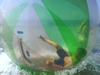 Мой)) Не-а, не страшно:) Я сама в ней кувыркалась. Некоторые даже бежать в ней могут. Душно только внутри, и когда накачивают - ухи закрывать нужно:) И еще может ветром унести, поэтому дядечка за веревочку ее держит.