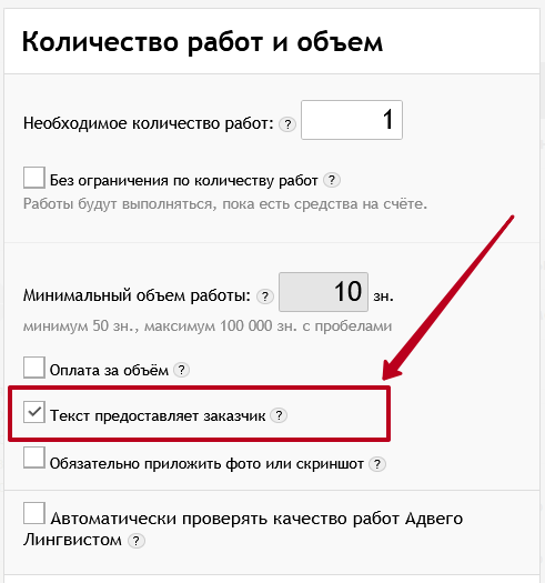 Новая опция "Текст предоставляет заказчик" позволяет оплачивать только публикацию контента, если у заказчика уже есть готовый текст:
