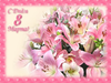 Поздравляю Всех девушек и женщин с этим прекрасным весенним праздником! Желаю море любви, внимания и понимания мужчин! Пусть настроение всегда будет отличным, а погода солнечной! Пусть ваши мужчины всегда осознают вашу бесценность и осыпают вас комплиментами! С праздником наши милые и любимые!