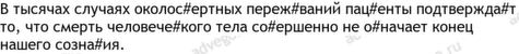 смерть 7, тело 7, подтверждать 5, видео 4, околосмертный 4, момент 3, доктор 2, затем 2, камера 2, опыт 2, оценивать 2, пациент 2, прежде 2, себе 2, сознание 2, существование 2, тонкий 2, умирающий 2, физический 2, авторитетный 1