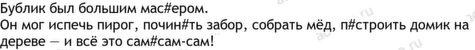 бублик 11, комод 8, лучик 7, все 3, значит 3, лапа 3, оно 3, помочь 3, просить 3, буркнуть 2, взрослый 2, дерево 2, деть 2, доверять 2, знать 2, легко 2, мед 2, мыть 2, один 2, пора 2