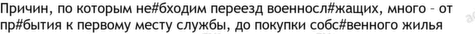 переезд 9, военнослужащий 7, военный 4, должность 4, жилье 4, регион 4, семья 4, служба 4, много 3, править 3, приятный 3, собственный 3, вещь 2, воинский 2, все 2, вышестоящий 2, государство 2, долгий 2, квартирный 2, компания 2
