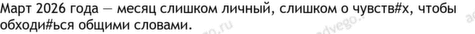 любовь 9, марта 9, чувство 6, все 5, месяц 5, особенный 5, 2026 4, лошадь 4, почтить 4, себе 4, вовремя 3, двенадцать 3, иза 3, март 3, может 3, отношение 3, признание 3, сердце 3, теплый 3, шаг 3