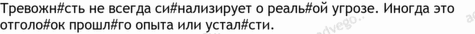 все 3, иногда 3, себе 3, внутренний 2, контроль 2, напряжение 2, пауза 2, психика 2, тревожность 2, угроза 2, учиться 2, 1 1, 2 1, 3 1, 4 1, абсолютный 1, безопасность 1, бессонница 1, борьба 1, быстрый 1