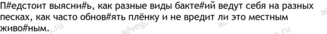 бактерия 4, живой 4, иза 4, несколько 4, пустыня 4, способ 4, ветер 3, пленка 3, ученый 3, вещество 2, десяток 2, инструмент 2, китай 2, корка 2, обычный 2, огромный 2, песок 2, поверхность 2, посадка 2, появляться 2