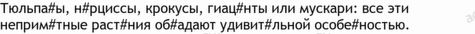 вернализация 1, луковицы накапливают энергию 0, луковицы растений 0, преимущество весенних луковичных растений 1
