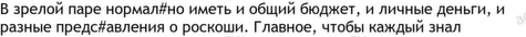 деньга 10, бюджет 7, править 6, все 5, обсуждать 4, отношение 4, пара 4, финансовый 4, иза 3, конфликт 3, один 3, оно 3, платить 3, пот 3, разговор 3, себе 3, тьма 3, чувствовать 3, важный 2, взрослый 2