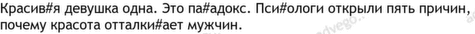 мужчина 10, красивый 9, красота 7, один 6, причина 6, бояться 5, девушка 5, много 3, оставаться 3, анна 2, вместо 2, выбор 2, интеллект 2, интерес 2, конкуренция 2, отталкивать 2, парализовать 2, подходить 2, психолог 2, пять 2
