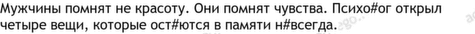 мужчина 9, лучше 4, тело 4, честный 4, быль 3, деталь 3, добрый 3, запомнить 3, оно 3, presente 2, важный 2, волноваться 2, забыть 2, красивый 2, навсегда 2, означать 2, почувствовать 2, привлекаться 2, психолог 2, себе 2