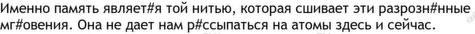 память 21, миро 5, оно 5, все 4, смысл 4, ткань 4, иза 3, личность 3, момент 3, настоящий 3, разрозненный 3, себе 3, хранить 3, будущий 2, вспоминать 2, высокий 2, деть 2, единый 2, живой 2, история 2