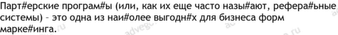 партнерский 9, программа 8, ссылка 6, целевой 5, ресурс 4, сайт 4, система 4, аудитория 3, владелец 3, выгодный 3, партнерка 3, сумма 3, товар 3, все 2, высокий 2, где-то 2, действие 2, длить 2, зарабатывать 2, канал 2