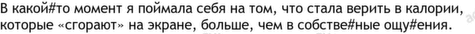 перестать 5, тело 4, идентичность 3, оно 3, ощущение 3, проект 3, себе 3, становиться 3, цифровой 3, все 2, данный 2, деть 2, задача 2, кажется 2, много 2, начать 2, норма 2, объяснение 2, показатель 2, приложение 2