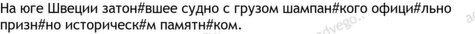 Текст посвящён признанию затонувшего судна с грузом шампанского на юге Швеции историческим памятником. После того как польские дайверы обнаружили это судно, которое затонуло в конце 19 века в водах Балтийского моря, было решено придать ему особый охранный статус. На борту судна находилось около 100 бутылок шампанского и редкая вода марки Selters. Этот артефакт представляет значительную культурно-историческую ценность и позволяет лучше понять условия хранения и транспортировки товаров того времени.