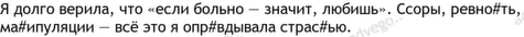 любовь 3, болеть 2, здоровый 2, отношение 2, партнер 2, ревность 2, токсичный 2, больной 1, бояться 1, верить 1, вина 1, все 1, встретить 1, встреча 1, долгий 1, душ 1, ежедневный 1, забирать 1, значит 1, измениться 1