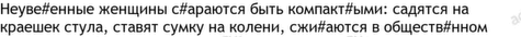 исправление 5, все 3, занимать 3, неуверенность 3, осанка 3, плечи 3, привычка 3, пространство 3, себе 3, создавать 3, внешний 2, внимание 2, выдавать 2, деталь 2, закрытый 2, извинение 2, извинить 2, интонация 2, исправить 2, комфортный 2