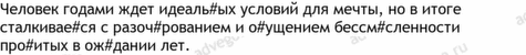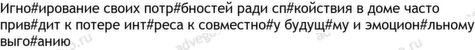 внутренний 3, чужой 3, важный 2, выбирать 2, их 2, личность 2, ожидание 2, привыкнуть 2, путь 2, себе 2, ситуация 2, чувство 2, амбиция 1, апатия 1, бесконечный 1, бояться 1, брать 1, бытовой 1, вдохновение 1, видный 1
