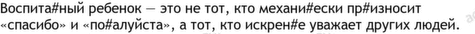 благодарить 3, вежливость 4, вежливый 4, взрослый 5, воспитание 3, воспитанность 3, воспитанный 5, воспитанный ребенок 2, вырастить 2, добрый 2, ежедневный 2, любовь 2, мягкий 4, наказание 2, ответственность 3, отношение 4, ошибка 3, поведение 6, поздороваться 3, правило 2, предложить 4, пример 7, Ребенок 32, родители 6, ругать 3, спасибо 5, терпение 3, требовать 3, уважать 3, уважение 7, уважение к ребенку 1, учить ребенка 2, чувство 6, эмоция 4