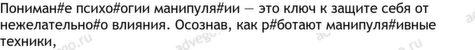 Текст от первого лица. Текст посвящен теме манипуляции в повседневной жизни и психологии воздействия на восприятие и поведение людей. Он определяет манипуляцию как искусное воздействие на сознание других с целью достижения определенных целей и исследует различные техники манипуляции, приводимые как в рекламе, так и в личных отношениях. Основное внимание уделяется причинам, по которым люди поддаются манипуляциям, включая эмоциональное давление, социальное доказательство и влияние окружения.