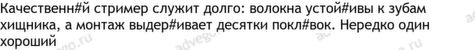 стример 14, приманка 6, хищник 6, их 5, ловля 5, вод 3, размер 3, расцветка 3, рыба 3, рыбалка 3, рыболовный 3, также 3, условие 3, щука 3, эффективный 3, активность 2, арсенал 2, волокно 2, впечатлять 2, голавль 2