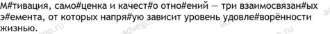 внутренний 12, самооценка 10, отношение 7, мотивация 6, личной 5, психологический 4, результат 4, собственный 4, уровень 4, внешний 3, достижение 3, ощущение 3, постоянный 3, уверенность 3, устойчивость 3, устойчивый 3, формироваться 3, цель 3, ценность 3, влияние 2