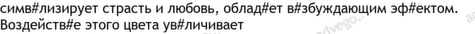 сексуальный 8, цвета 8, их 6, эмоциональный 6, предпочитать 5, стремиться 5, интимный 4, красный 4, оранжевый 4, черный 4, эксперимент 4, ассоциироваться 3, выбирать 3, коричневый 3, особенный 3, отношение 3, оттенок 3, предпочтение 3, склонный 3, создавать 3