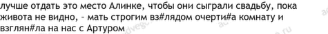 свадьба 11, артур 8, все 7, деть 6, быль 5, иза 5, оно 5, долгий 4, идеальный 4, нужно 4, сестра 4, данный 3, знать 3, изначальный 3, много 3, отдать 3, отметить 3, платье 3, ресторан 3, речь 3