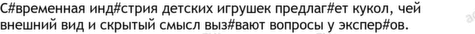 безопасность 2, влияние 1, возрастные рекомендации 1, геометрические закономерности 1, загадочность 1, игрушки 3, искусственная паутина 1, кукольные домики 1, мистика 1, ответственность взрослых 0, подвижные детали 1, познавательный интерес 1, положительный эффект 1, производители 1, пропорции 1, психологи 2, развлекательные продукты 1, родители 1, светящиеся детали 1, световые эффекты 1, сертификаты 1, страхи 1, творческий подход 1, тенденции 1, технические новшества 1, точность движений 1, тревога 1, условная угроза 1, электронные детали 1