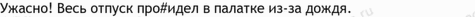 весить 1, гор 1, дождь 1, единение 1, единиться 1, заплатить 1, иза-за 1, оплатить 1, отпуск 1, палатка 1, природа 1, просидеть 1, ранний 1, съездить 1, уехать 1, ужасный 1
