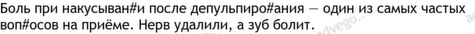 зуб 16, канал 10, боль 7, нерв 6, верхушка 5, депульпирование 5, коронка 5, корень 4, прием 4, 2 3, долгий 3, инструмент 3, лечение 3, материал 3, минуть 3, накусывание 3, нужно 3, обработка 3, один 3, оно 3