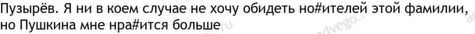 Художественный рассказ. Глеб и Мария готовятся к свадьбе. Внезапно невеста озвучивает жениху желание сохранить свою девичью фамилию Пушкина. Дело в том, что Пузырёвой ей становиться не хочется. Мужчина воспринимает это как оскорбление. Повествование ведётся от первого лица.