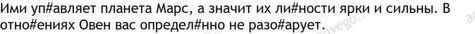овен 27, оно 6, знать 3, значит 2, иза 2, их 2, личность 2, может 2, полон 2, поставить 2, постоянный 2, творческий 2, трудолюбивый 2, упрямый 2, ценить 2, честный 2, энергия 2, 1 1, 2 1, 3 1