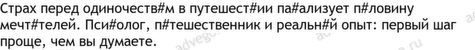 путешествие 9, один 6, одиночество 6, неделя 5, нормальный 5, знать 4, одиночка 4, этап 4, встретить 3, деть 3, домыть 3, написать 3, пот 3, решение 3, все 2, выбрать 2, грустно 2, жилье 2, забронировать 2, забыть 2