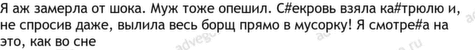 Свекровь вылила мой борщ прямо в мусорку. Видите ли, её сыночек не может есть такое "жалкое подобие еды"