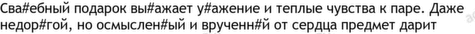 подарок 9, звезда 5, иза 4, личной 4, подарить 4, сертификат 4, точно 4, дарить 3, забыть 3, заранее 3, их 3, маршрут 3, один 3, песня 3, портрет 3, стиль 3, ценить 3, эмоция 3, авторский 2, вещь 2
