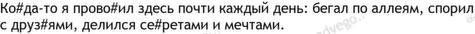 сад 5, быль 2, ветвь 2, воспоминание 2, вспоминать 2, дерево 2, детство 2, забросить 2, знакомый 2, игра 2, лавочка 2, меняться 2, момент 2, напоминать 2, первое 2, почтить 2, сквозь 2, трава 2, тропинка 2, тьма 2