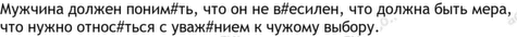 мужчина 11, нужно 3, общество 3, относиться 3, поэтому 3, приставать 3, счастливый 3, вести 2, весть 2, иза 2, имя 2, любой 2, мол 2, нередкий 2, отвергать 2, понравиться 2, себе 2, согласие 2, ставить 2, стоить 2