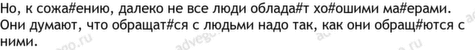 нужно 6, оно 5, уважать 4, все 3, их 3, обращаться 3, отношение 3, поэтому 3, пусть 3, выказывать 2, высокий 2, зло 2, значит 2, мизантроп 2, некрасивый 2, неприятно 2, плохой 2, право 2, прийтись 2, рюкзак 2