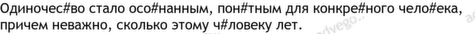 все 7, одиночество 4, много 3, равный 3, верить 2, доверие 2, круг 2, личной 2, может 2, один 2, оно 2, осознанный 2, пространство 2, себе 2, семья 2, тьма 2, 2-3 1, агрессивный 1, бесконечный 1, бессознательный 1