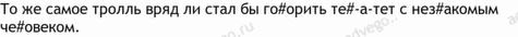 тролль 9, все 5, интернет 4, их 4, стараться 3, заставлять 2, много 2, может 2, написать 2, оно 2, поднимать 2, править 2, провоцировать 2, реальный 2, слабый 2, тема 2, уметь 2, активный 1, безобидный 1, весть 1