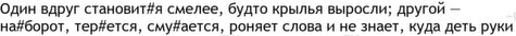 оно 7, грудь 4, иза 3, любовь 3, условие 3, ванна 2, искать 2, мужчина 2, мыть 2, нож 2, один 2, семья 2, ультиматум 2, чего 2, а-ля 1, адвокат 1, анализировать 1, аплодировать 1, бежать 1, безжалостный 1