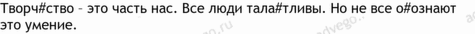 творчество 8, все 6, творческий 5, много 4, процесс 4, себе 4, внешний 3, внутренний 3, качество 3, миро 3, начинать 3, проявлять 3, веселый 2, задумываться 2, знать 2, извлечь 2, иначе 2, критика 2, личность 2, любовь 2