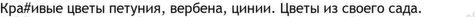 Фото цветы цинии, вербена, петуния