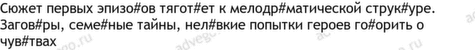ваня 2, добраться 2, оно 2, охранник 2, беглец 1, блогер 1, бой 1, бывший 1, великий 1, вести 1, взрослый 1, взрыв 1, вовремя 1, волшебник 1, все 1, втянуть 1, выбирать 1, вылететь 1, выходной 1, главное 1