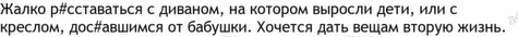 аллергия 1, астма 1, еврокнижка 1, замена мебели 0, инфекция 0, исторический предмет 0, каркас дивана 1, качество материалов 0, клопы в мебели 1, комфорт 1, кресла 1, механизмы трансформации 1, перетяжка мебели 1, плесень на диване 1, покупка новой мебели 0, реставрация мебели 1, сантиментальная ценность 0, скрип при нагрузке 1, старые диваны 0, трещины в брусе 1, угроза безопасности 2