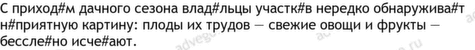 безопасность 1, видеонаблюдение 1, высадка 0, границы 1, грядки 1, дачники 1, дачный сезон 1, защита 2, злоумышленники 1, конфликты 1, меры 1, наблюдательность 1, огородная мафия 2, отношения 1, подземные ходы 5, похитители 1, почва 2, пропажа 1, растения 2, соседи 3, туннели 1, урожай 6, участок 7