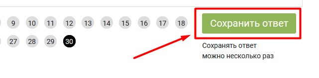После выбора всех обязательных вариантов в вопросе нажмите кнопку "Сохранить ответ".